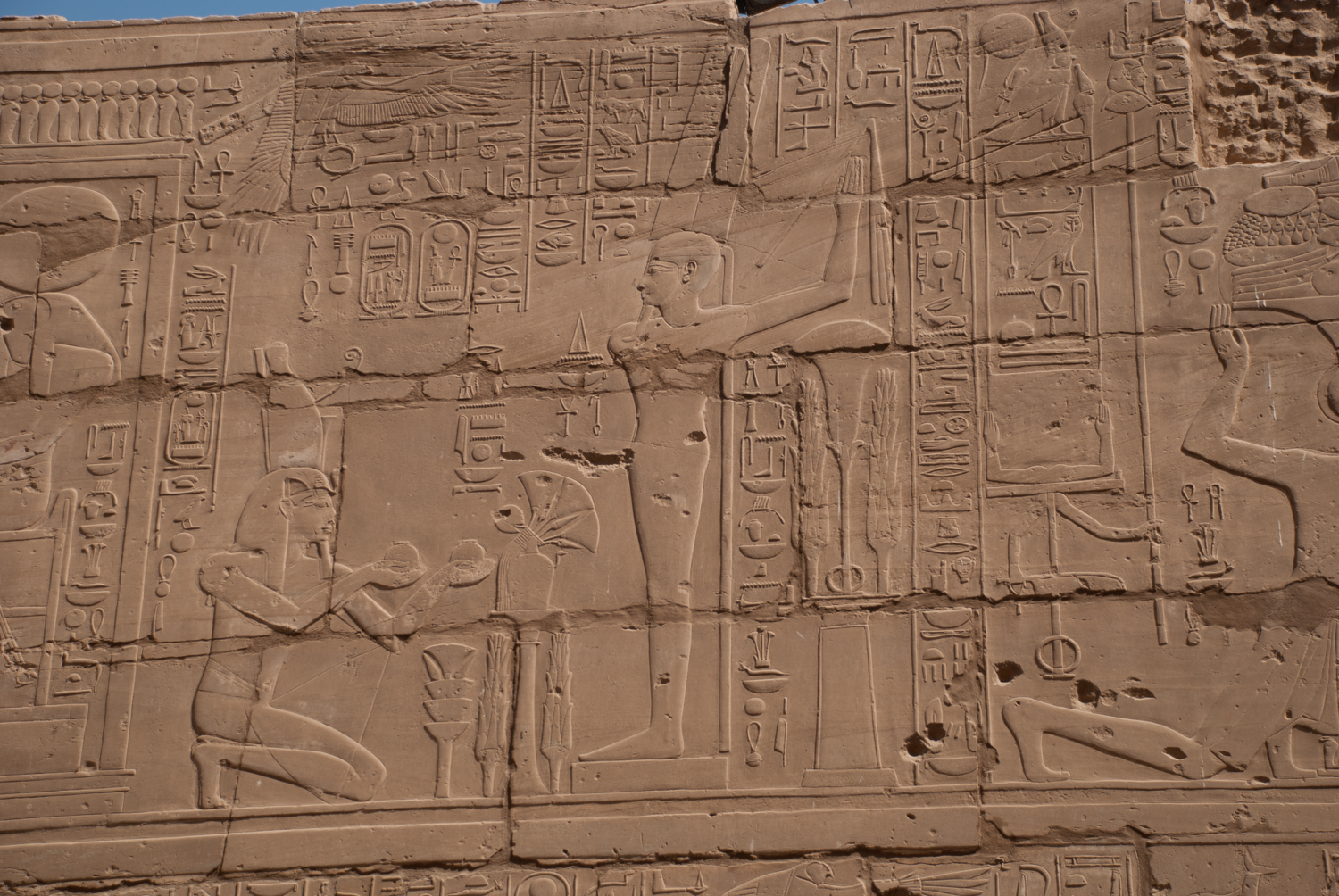 Når man bevæger sig rundt I det antikke Egyptens templer og andre bygningsværker finder man hieroglyffer på mange af væggene.