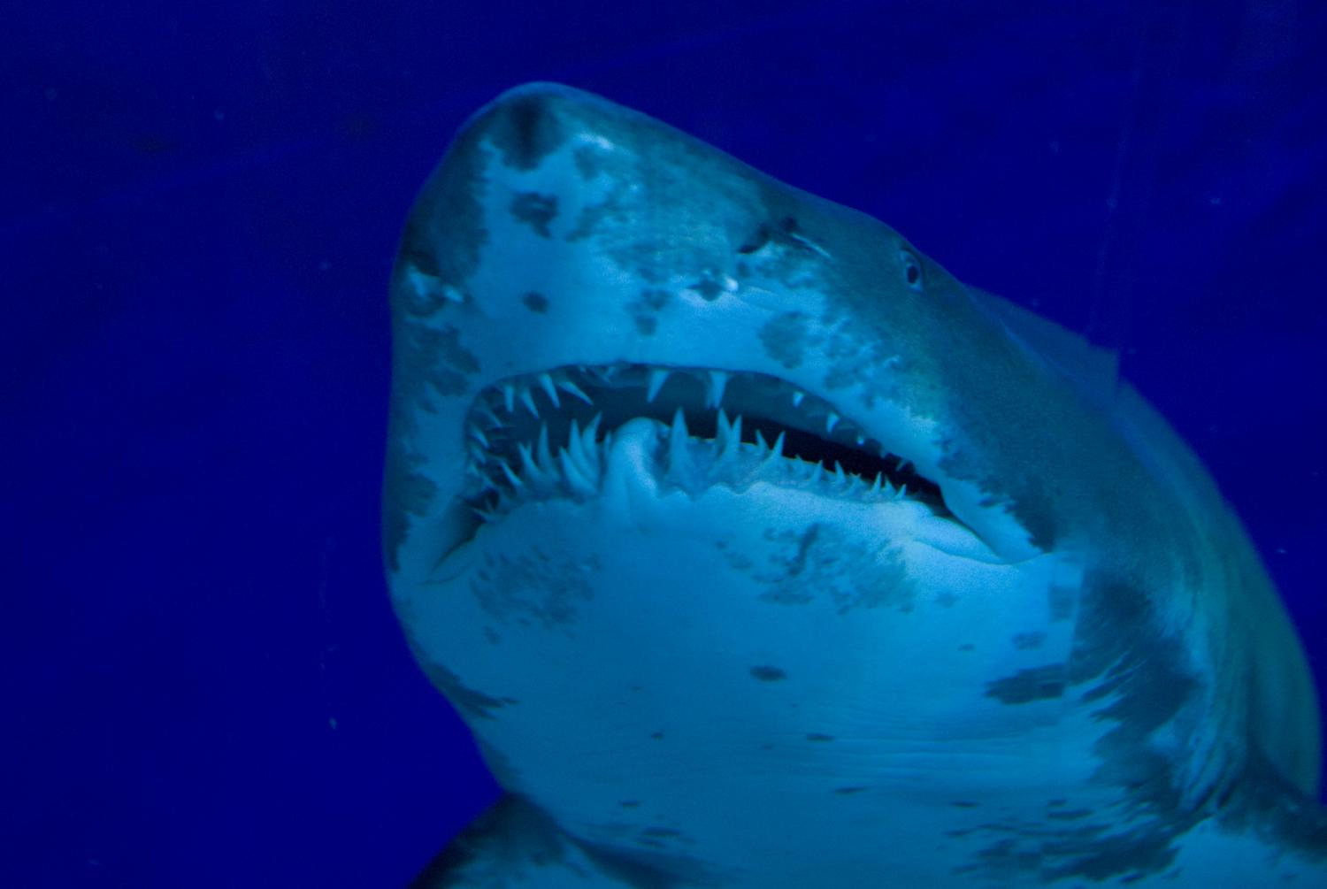 I det store akvarium kan man se nogle af havenes store dyr. Der er også mange rokker, hajer, skildpadder og naturligvis en masse mindre fisk. Det er ganske imponerende at vandre igennem den næsten 100 meter lange tunnel, mens fisker svømmer forbi omkring en. På billedet er det en haj, som svømmer lige hen over tunellen.